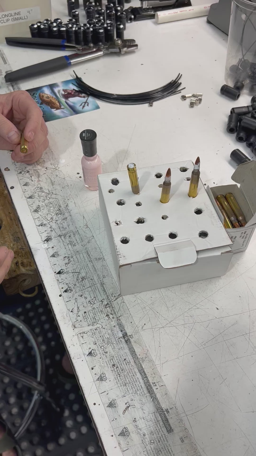 La gran mayoría de la munición .223/5.56 no está sellada, por lo que debe comprarnos la munición o sellarla usted mismo. Recomendamos limpiar el cartucho con una toalla de papel seca y luego aplicar 1 capa de esmalte de uñas acrílico en la parte posterior o en el cartucho y 1 capa donde la bala se encuentra con la carcasa. no aplique demasiado o las rondas pueden atascarse o no detonar. (VER VÍDEO)